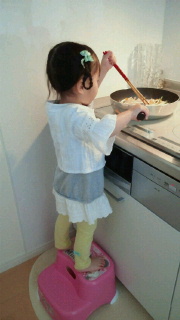 かなりあぶなっかしい手つきですが(笑) 進んでお手伝いしてくれます