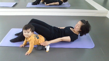 今日は運よく()(笑) Rくんが途中でお昼寝してくれたので Flowでレッスンすることができました 「Flow」というのは、 エクササイズを 流れるように続けて行うことです これがなかなか大変なの 運動量あるからね~