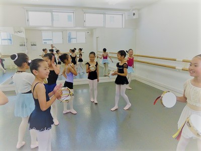 持ち道具のタンバリンがみんなの手に
