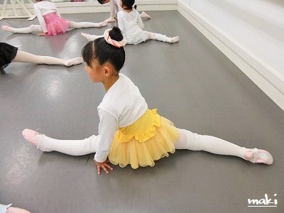 ストレッチは踊りの土台。 痛いっ けど、楽しーっ どんな時も、楽しむことを忘れてはいけない(笑)。 楽しむ天才がたくさんいます(笑)、小学校低学年軍団。 マキ先生のOKには、まだ遠いが さっきまで笑っていたかと思うと、真剣に取り組む横顔 やるときゃ、やります。 その精神に、「ブラボー」