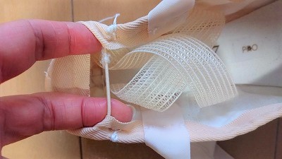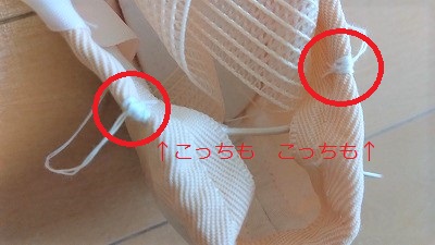 リボンやゴムをどうして縫い付けるかってこと。